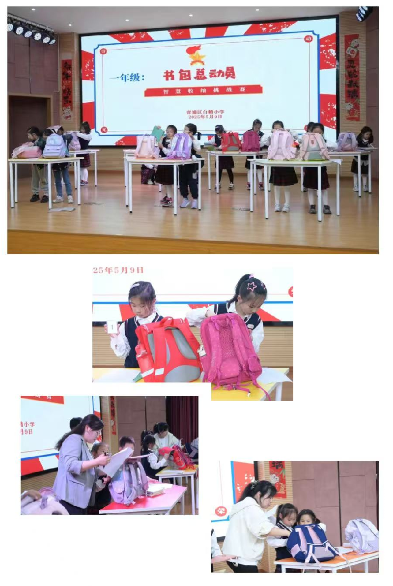 课本“列队”、文具“归巢”!瞧,面对课桌上杂乱无章的书本和学习用品,一年级的萌娃们眼疾手快地对照课表快速分类并整齐地收纳进书包。他们稚嫩的脸庞写满专注,动作虽快却不慌乱,一眨眼的工夫,桌面的各类学习用品都被收拾得整整齐齐。
