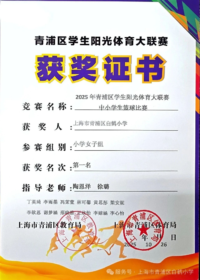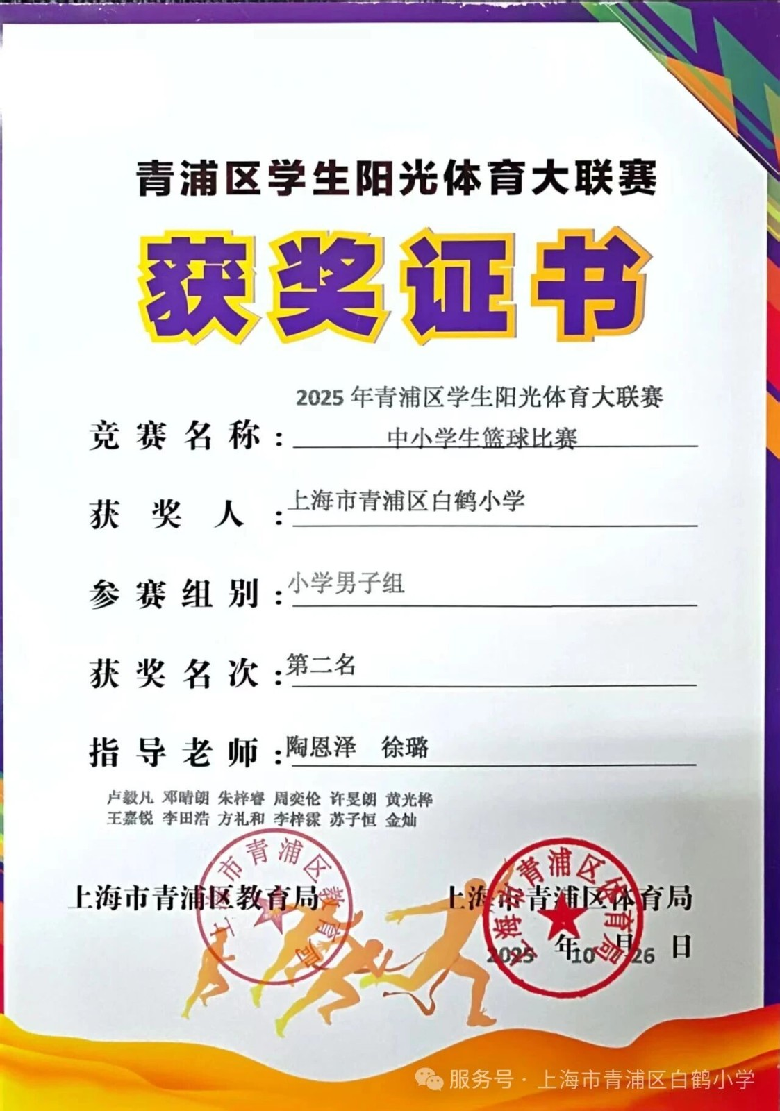 2025年10月,在青浦区举办的小学生篮球比赛中,白鹤小学篮球队凭借出色的表现和顽强的拼搏精神,成功夺得女子组冠军和男子组亚军。这一成绩不仅展示了白鹤小学篮球队的强大实力,也彰显了队员们团结协作、勇于拼搏的精神风貌