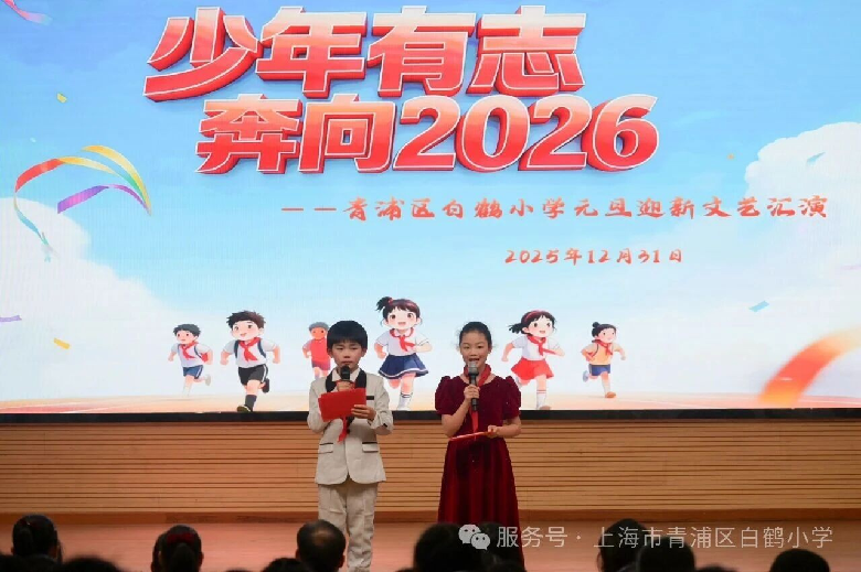 歌声袅袅辞旧岁,舞姿翩翩迎新年。2025年12月31日下午,上海市青浦区白鹤小学举办“少年有志 奔向2026”元旦迎新文艺汇演。学校领导、校“五好”关工委员、师生及家长朋友们欢聚一堂,在歌声与舞姿中共享欢乐时光,共赴新年之约。