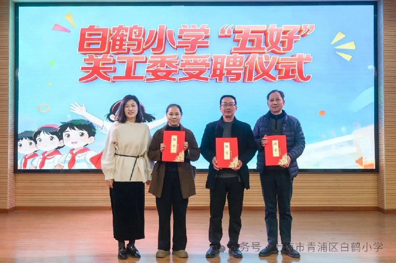 为进一步加强学校关工委建设,凝聚育人合力,现场举行了校“五好”关工委委员受聘仪式。校长张老师宣读名单,周兴元爷爷、马菊根爷爷、顾周萍奶奶受邀上台,学校领导为他们颁发聘书。这份聘任承载着责任与期许,让“五好”关工委的关爱之力融入校园育人全过程,携手为少年成长保驾护航。