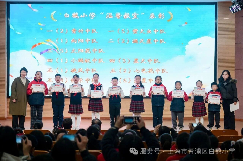 随后,副书记江老师宣布了获得“温馨教室”称号的中队名单,江老师与副校长吴老师共同为获奖中队颁奖。这一份份荣誉,见证了各班级用爱与创意打造的温馨家园,也让校园充满了温暖与凝聚力。