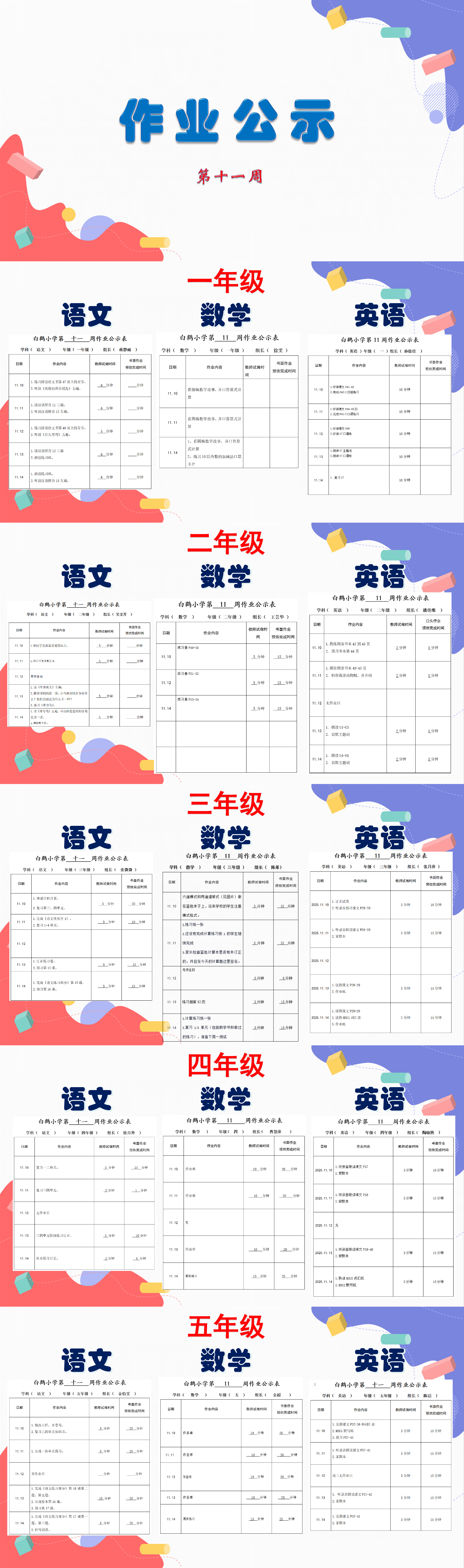 2025学年第一学期第11周作业公示