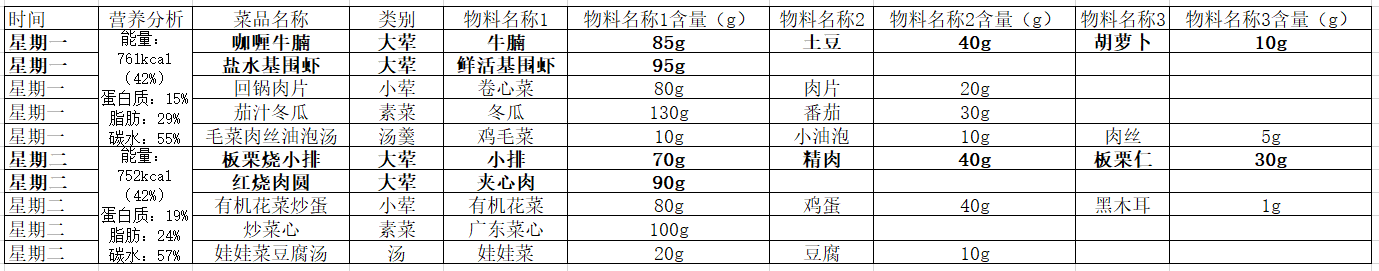 青浦区白鹤小学生营养午餐菜谱 2025年第一学期 第4周