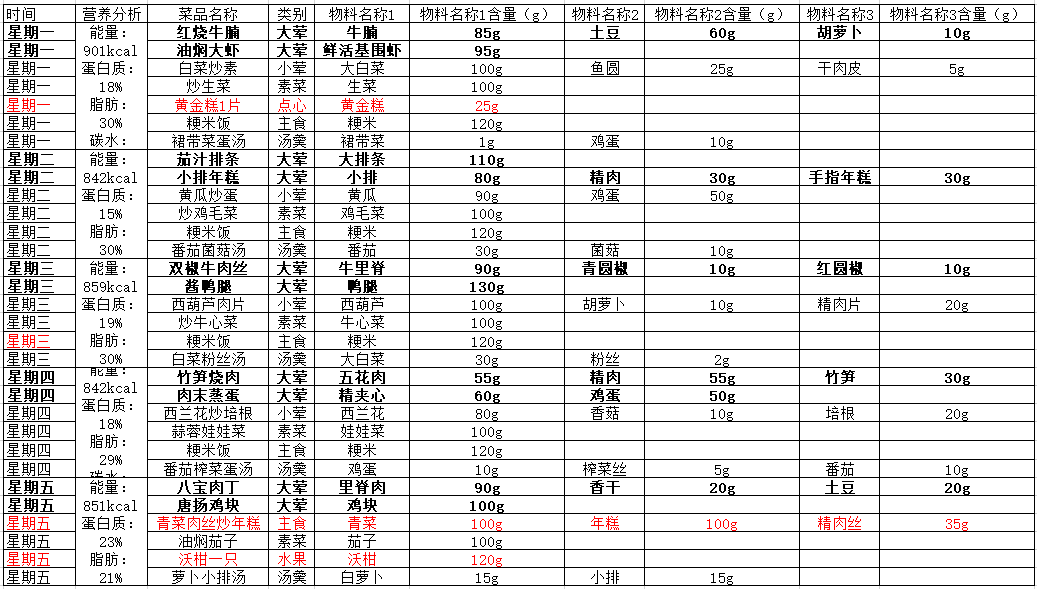 2025学年第二学期第一周成品菜公示