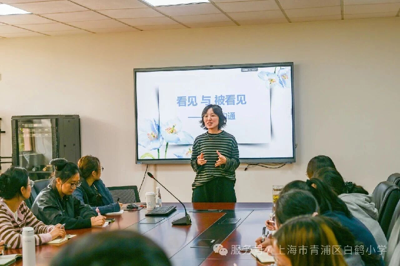 2025年11月3日,白鹤小学“小白杨”班主任工作坊迎来了2025学年首次专题培训。我们有幸邀请到青浦豫英小学的资深班主任郭娟老师,为全体新手班主任带来了一场题为《看见与被看见——家校沟通》的智慧盛宴。