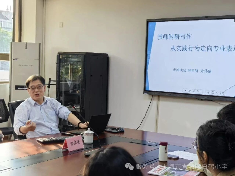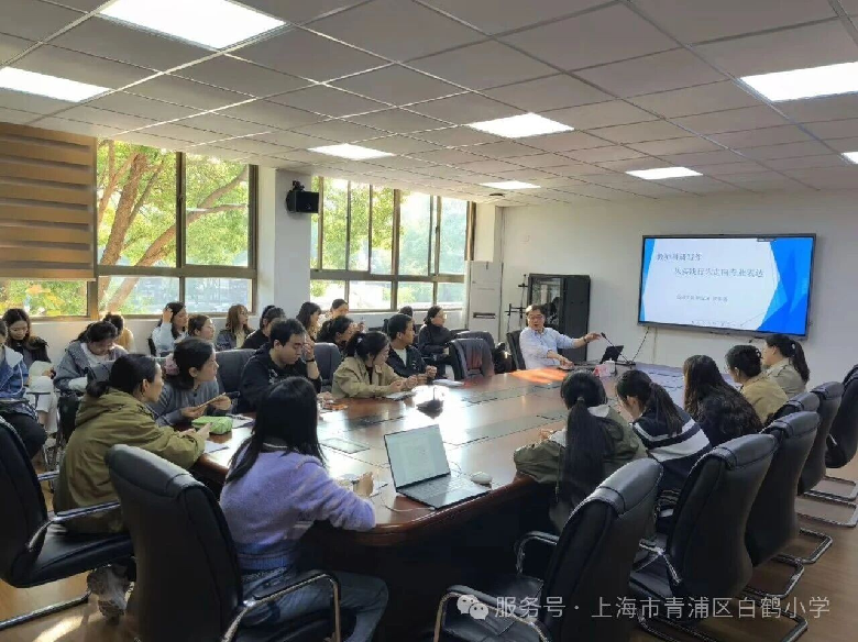 为助力教师深耕教育科研,提升专业写作能力。2025年11月14日下午,青浦区白鹤小学开展了主题为“萃取实践智慧 助推专业进阶”的论文撰写专题培训会。本次活动特邀青浦实验研究所、青浦教育学会秘书长、《青浦教育》副主编宋伟倩老师莅临指导,白鹤小学副校长吴丽芳主持本次活动,白鹤小学第八届名优教师及部分青年教师参加活动。